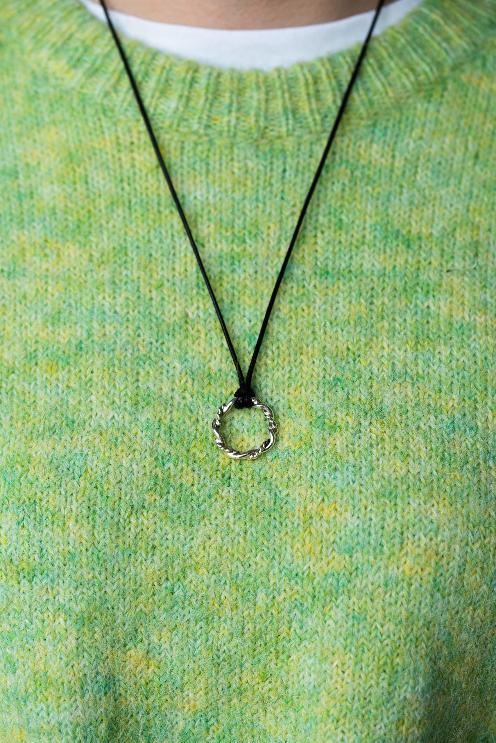 Order one of our WREATH rings to put on the cord to make a wreath pendant necklace! As shown in the second image. To attach the ring, you do not need to undo the knots or remove the bead! Simply thread the loop of cord furthest from the bead through the ring, then thread the end of cord with the bead through the loop and pull until tight.