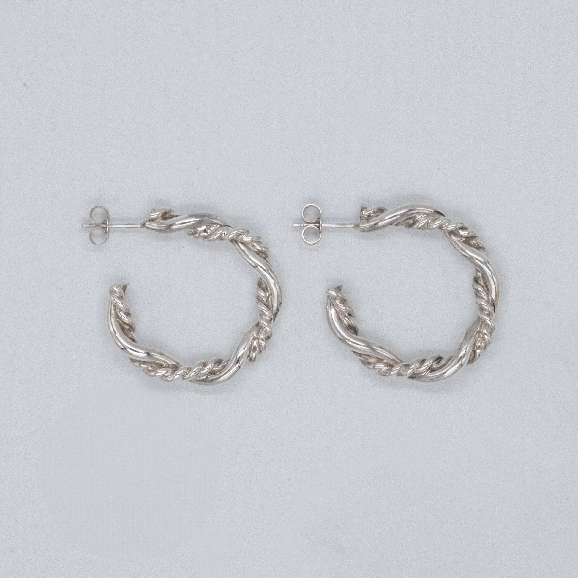 Solid sterling silver half-hoop earrings in a chunky wreath design. Includes scroll earring backs.