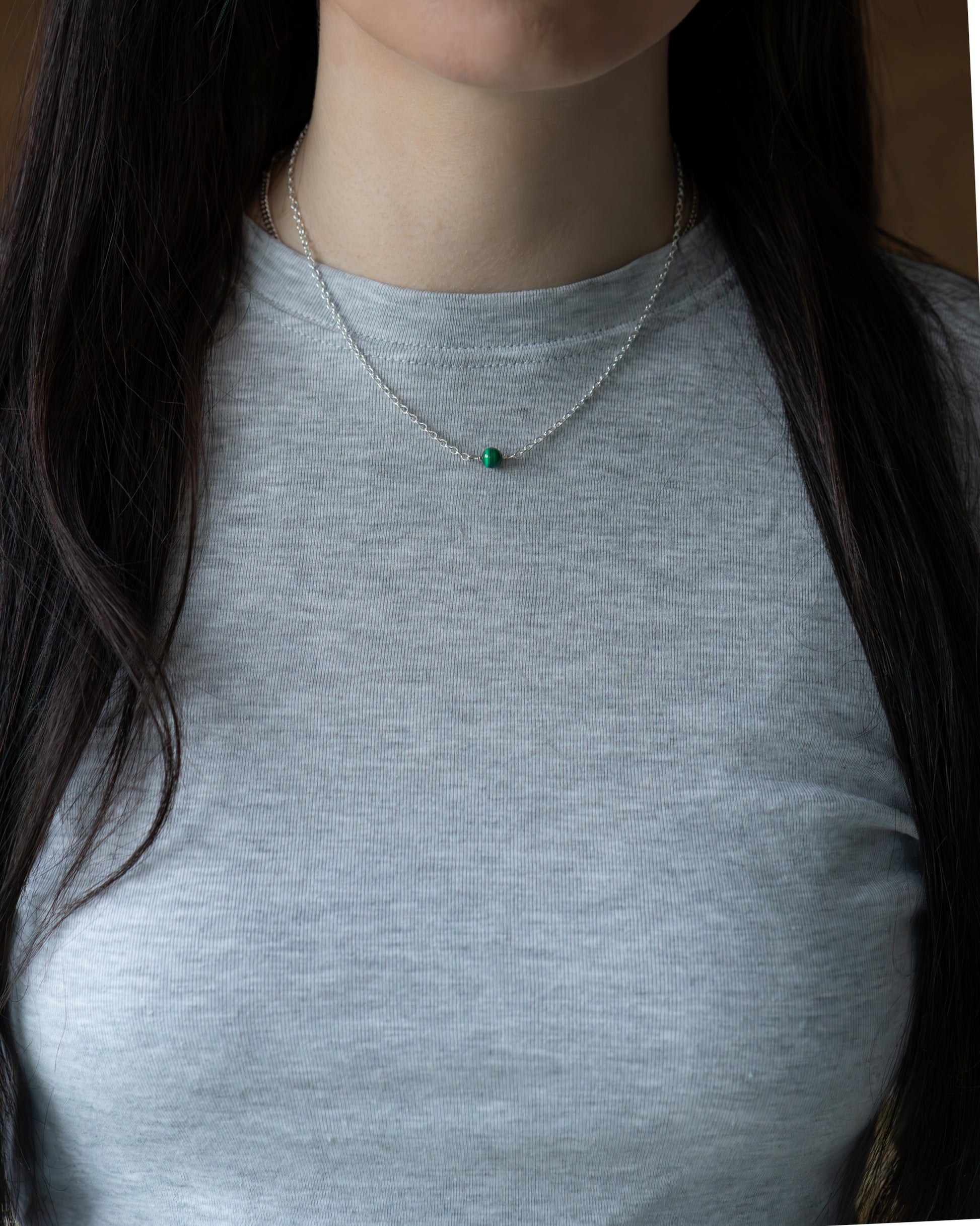 Sterling silver necklace with the 6mm semi-precious gemstone bead of your choice attached