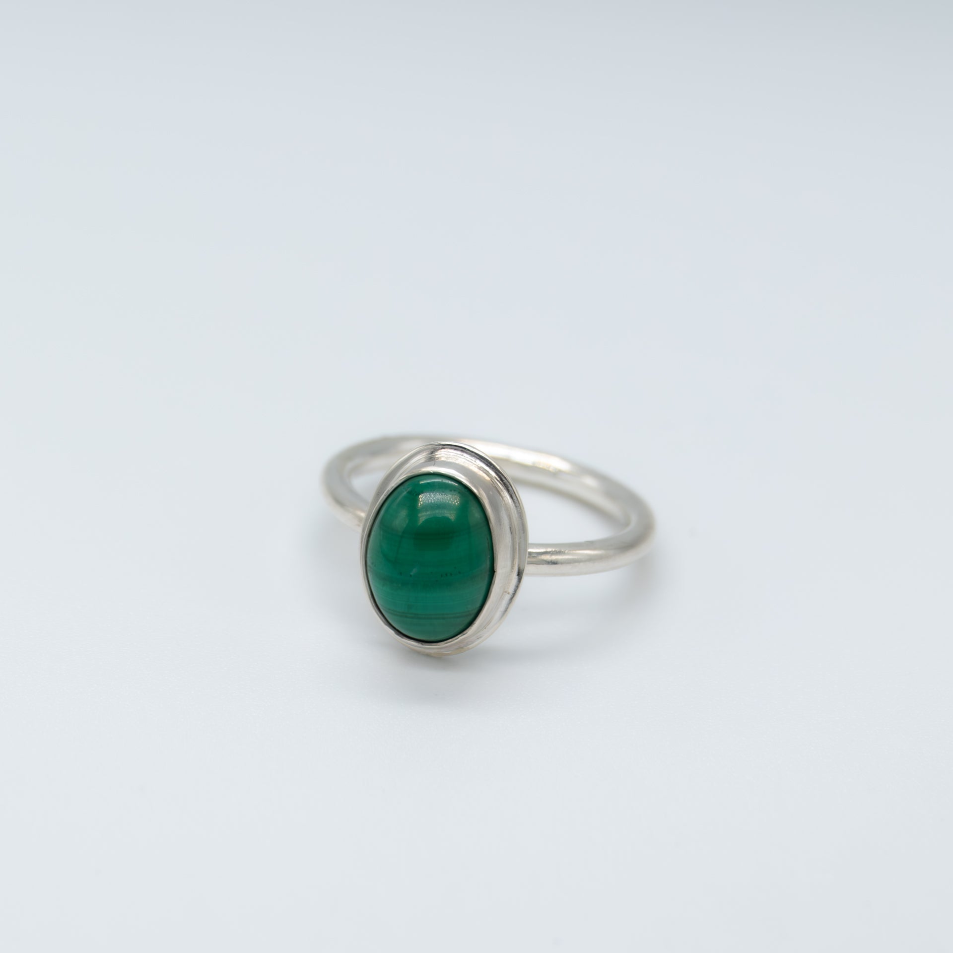 Malachite small oval silver ring (Ready to Ship)