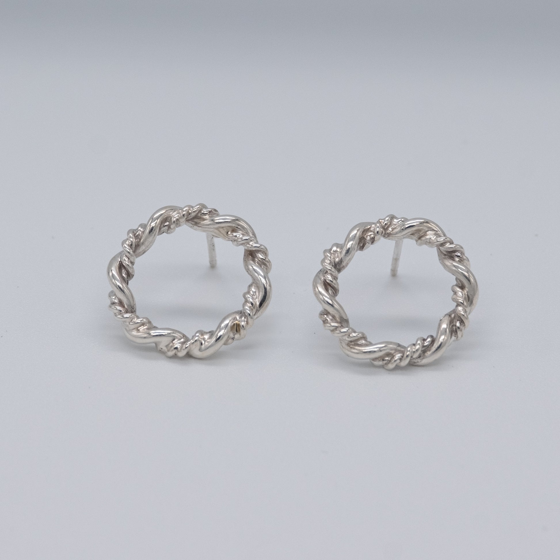 Solid sterling silver stud earrings in a wreath design. Includes scroll earring backs.